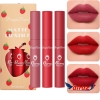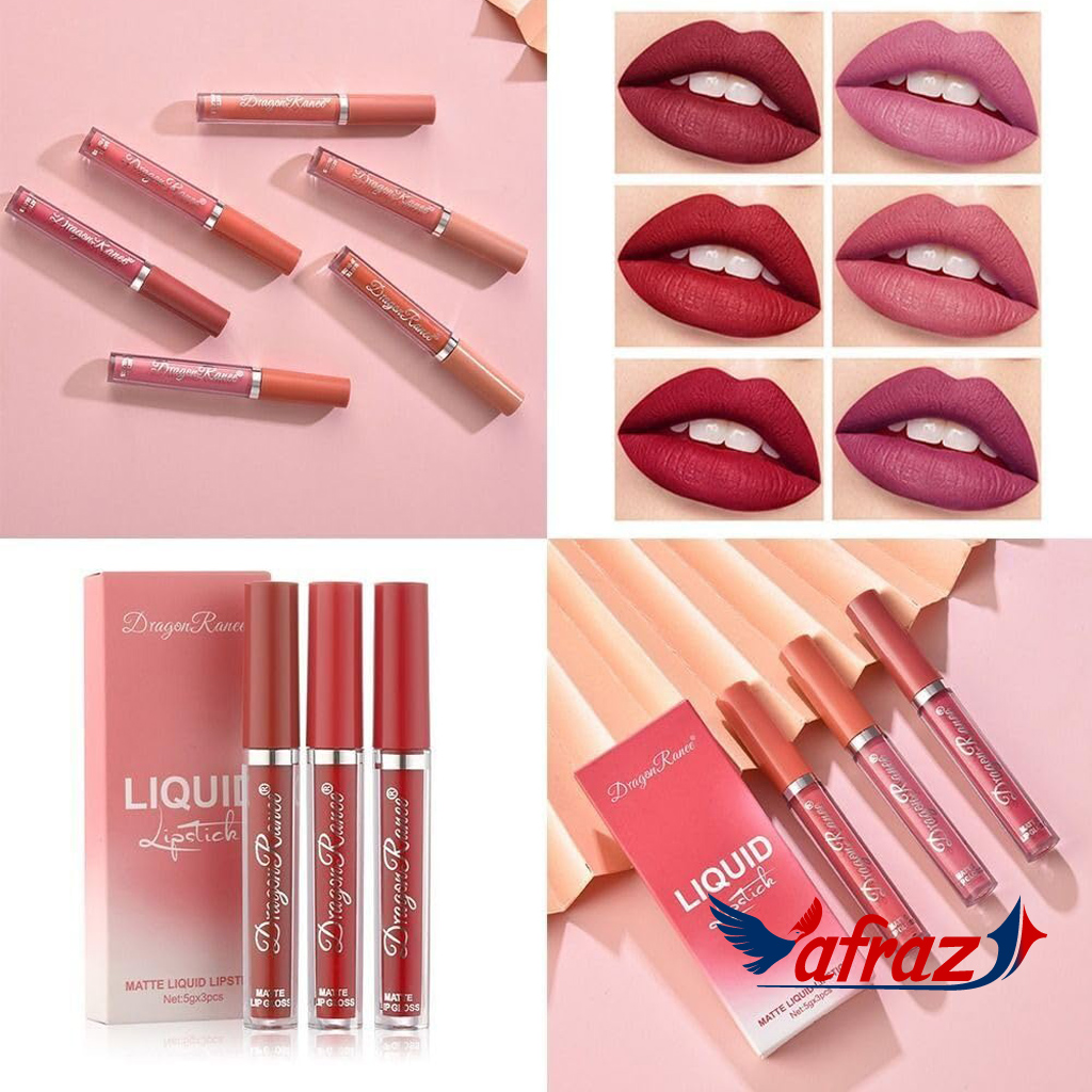 DRAGON RANEE 3Pcs Lip Glaze Velvet Matte Liquid Lipstick Set Orange Milk Tea Bean Paste Non-sticky Lip Gloss Tint Cosmetics